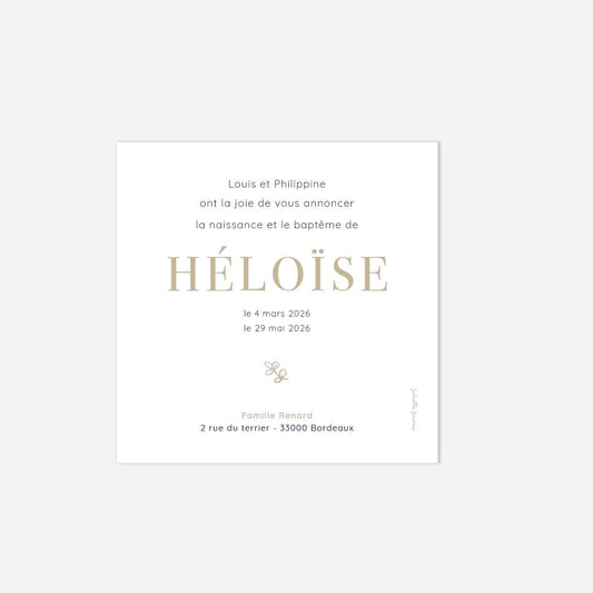 Faire-part de naissance personnalisé - jardin poétique beige