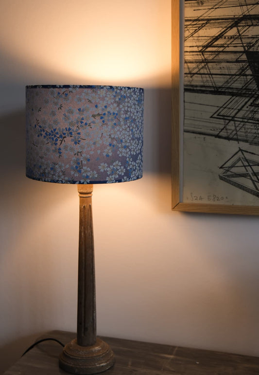 Abat-jour papier japonais fleurs bleues