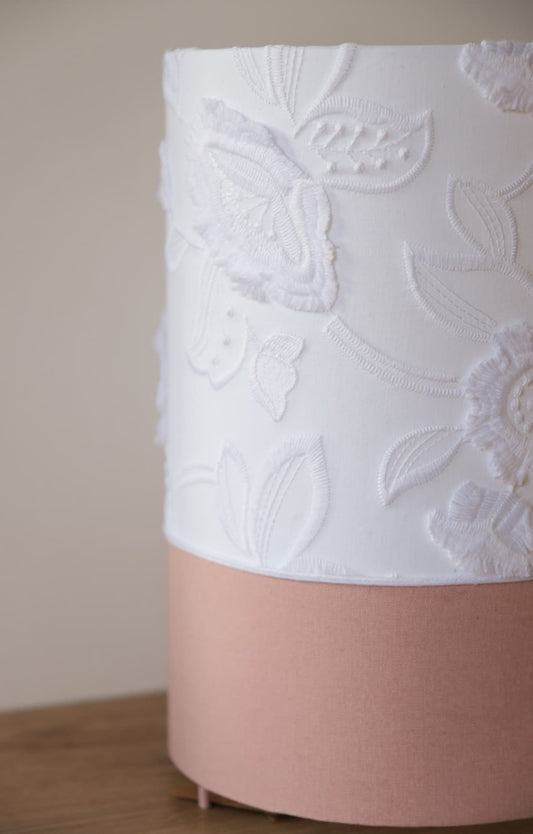 Lampe à poser - coton brodé rose et blanc