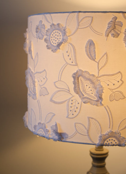 Abat-jour fleuri en coton brodé