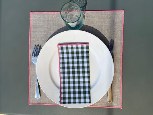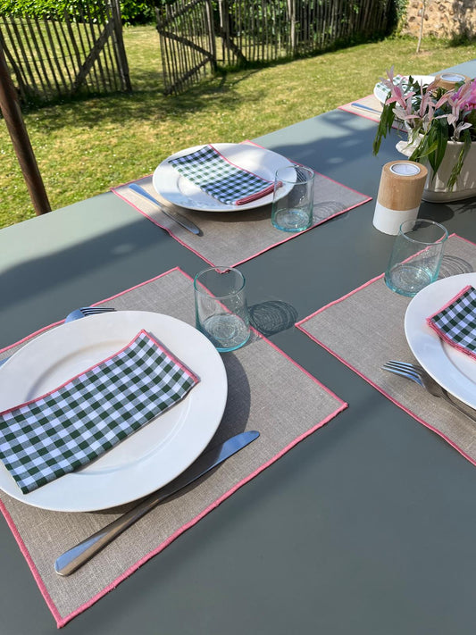 Sets de table – Tissu anti-tâches – Motifs cœur sacré – Fond uni rose –