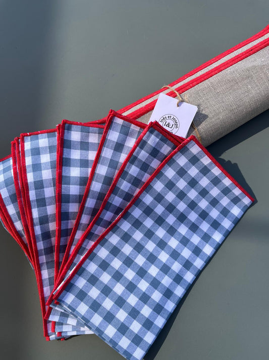 6 Serviettes de table en vichy bleu