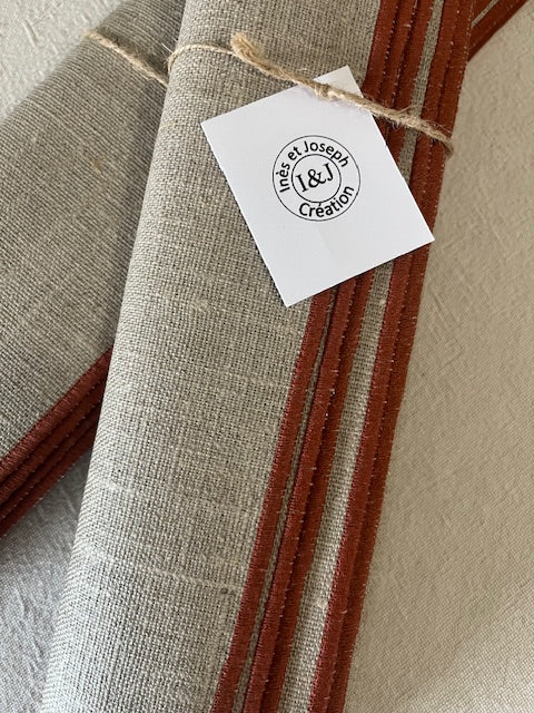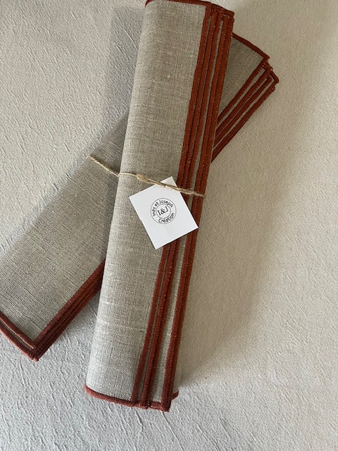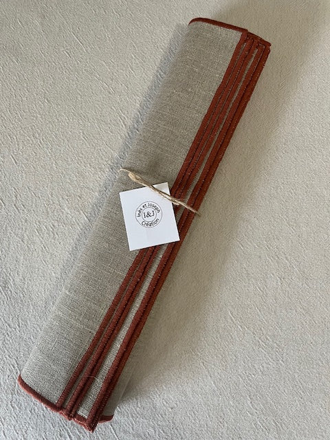 6 sets de table carrés en lin enduit - bord bordeaux