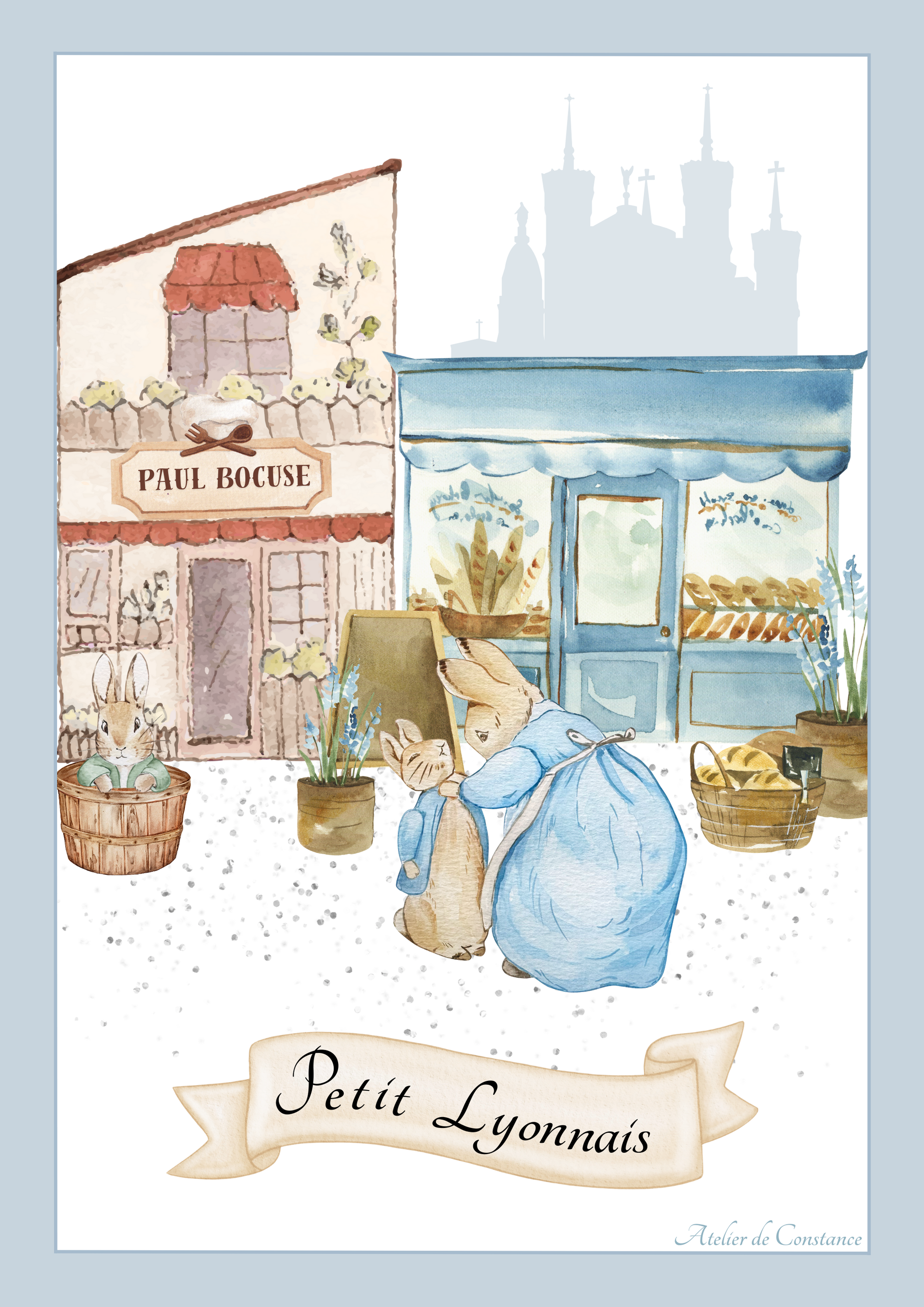 Affiche illustrée pour enfant inspirée de la région lyonnaise, mettant en scène un univers tendre et poétique.