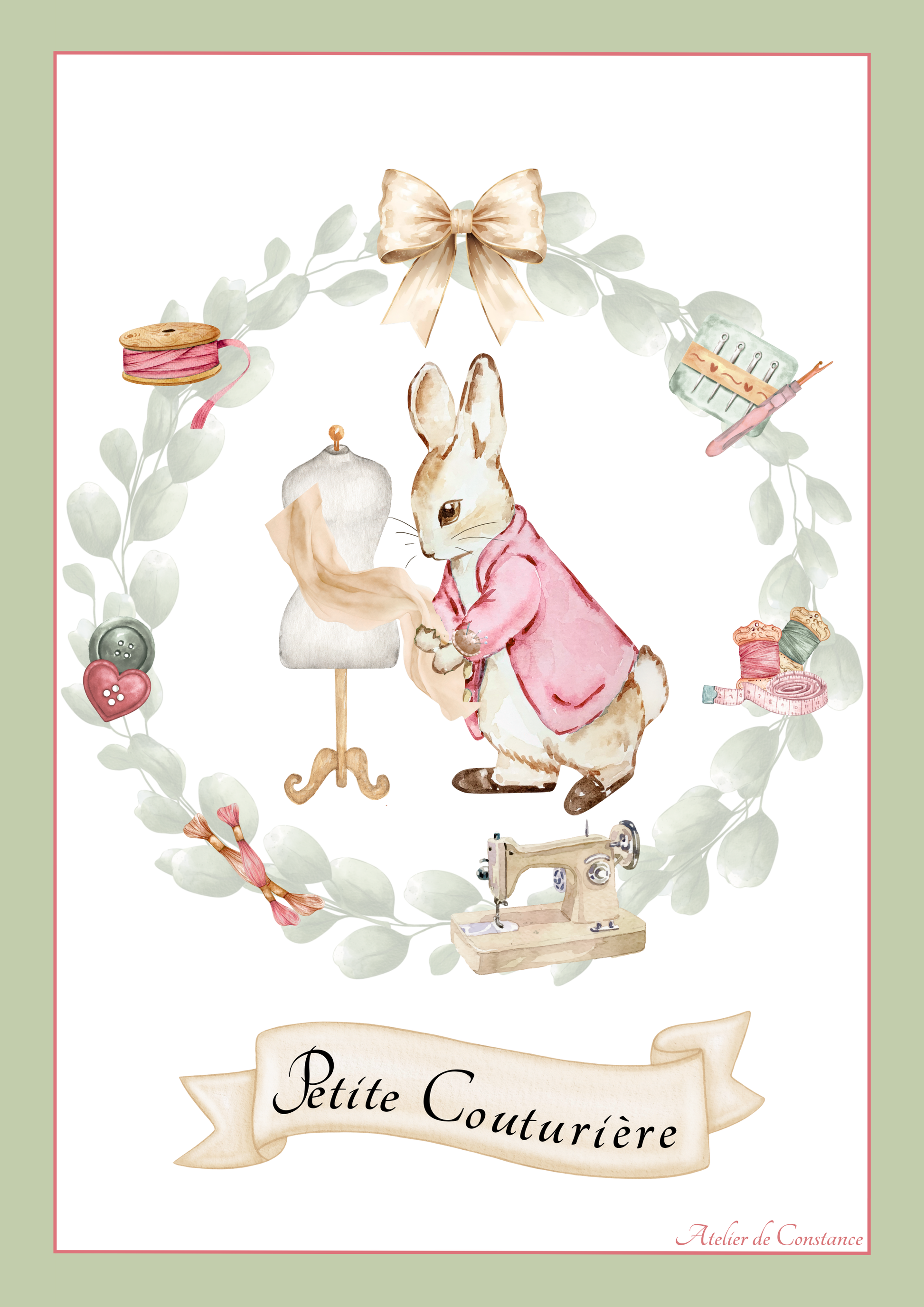 Cette illustration délicate met à l’honneur l’univers de la couture à travers des détails raffinés et une ambiance chaleureuse.