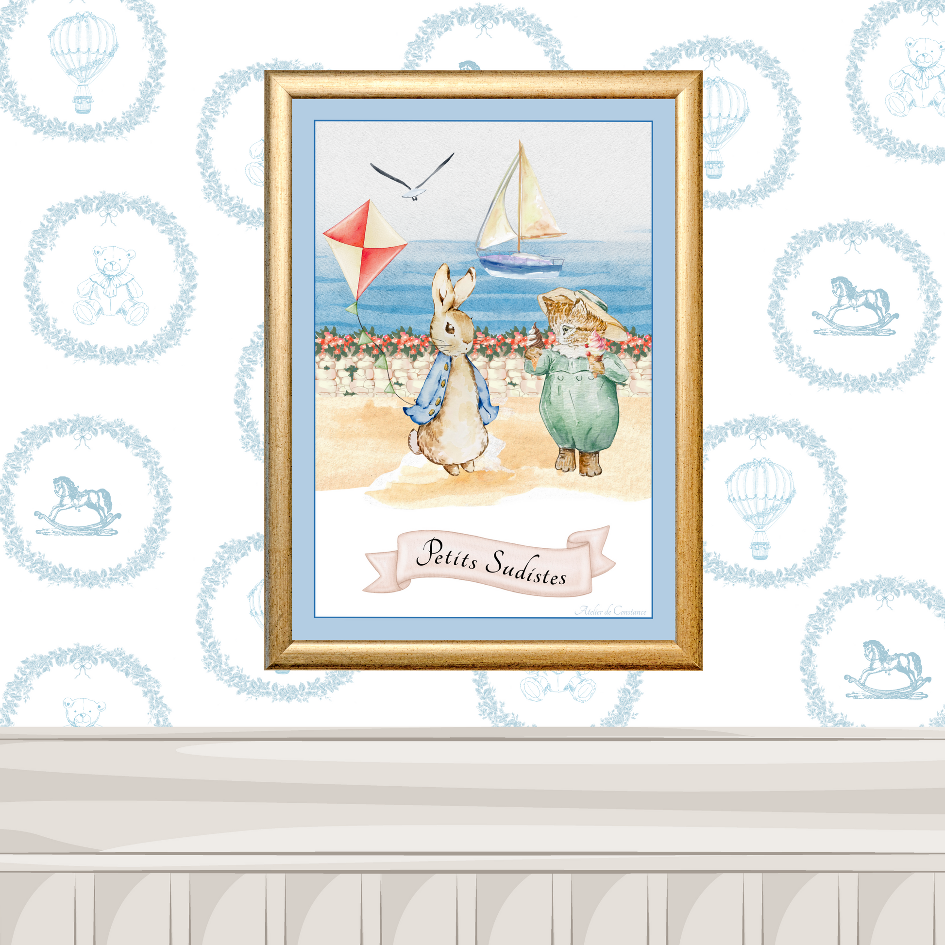 Affiche illustrée pour enfant inspirée de la Côte d’Azur, évoquant le soleil et la douceur de vivre du Sud.
