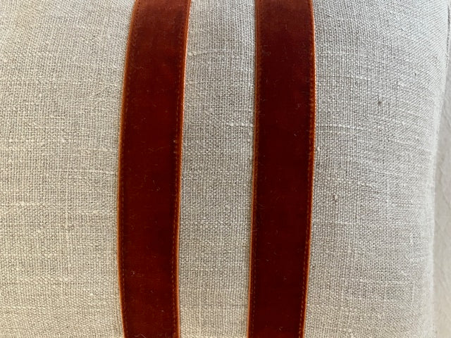 Coussin en lin - bande de velours écureuil