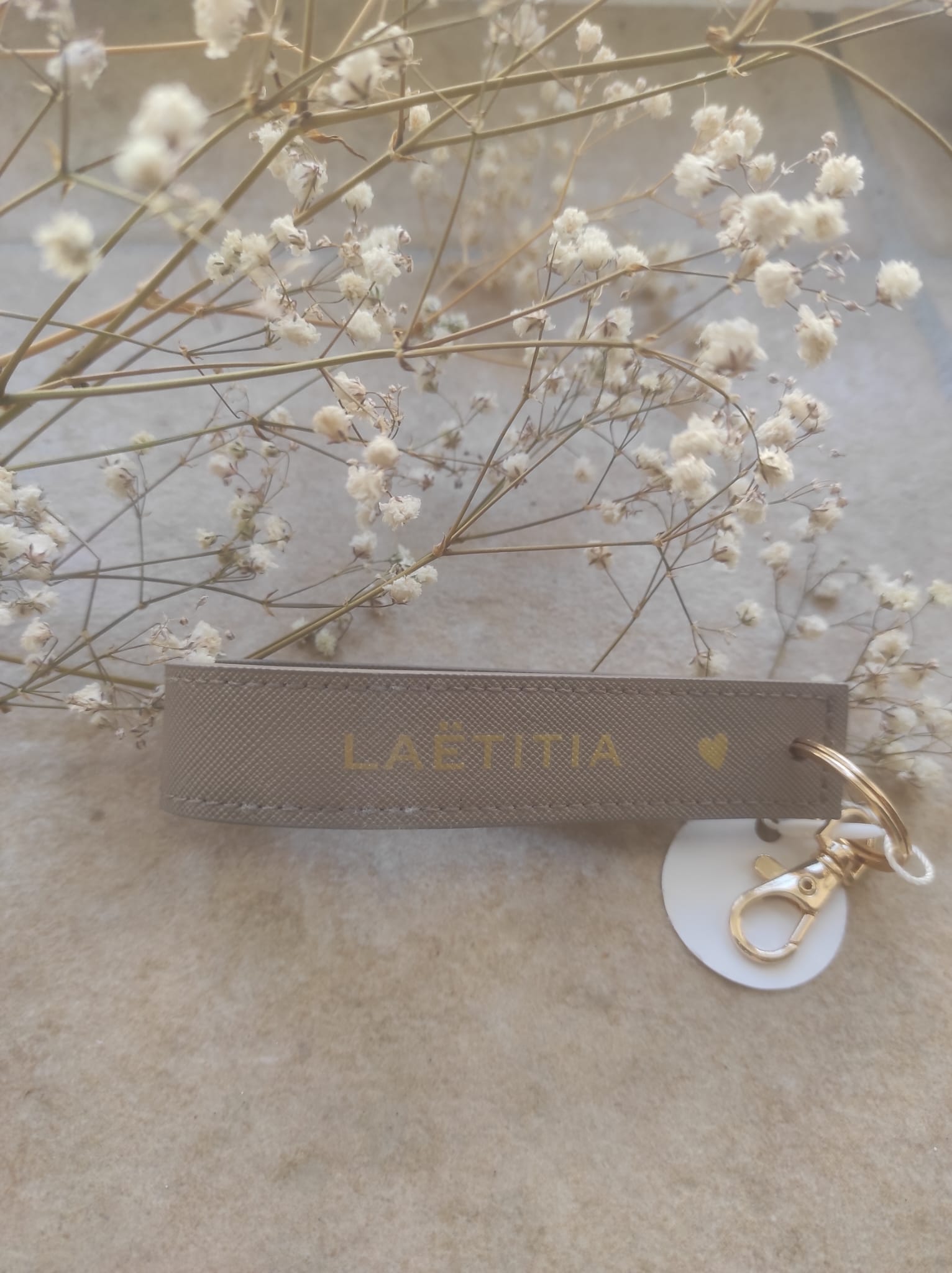 Un porte-clé tendance en similicuir personnalisable selon vos envies pour un proche, avec le prénom d'un enfant ou le nom d'une maison.