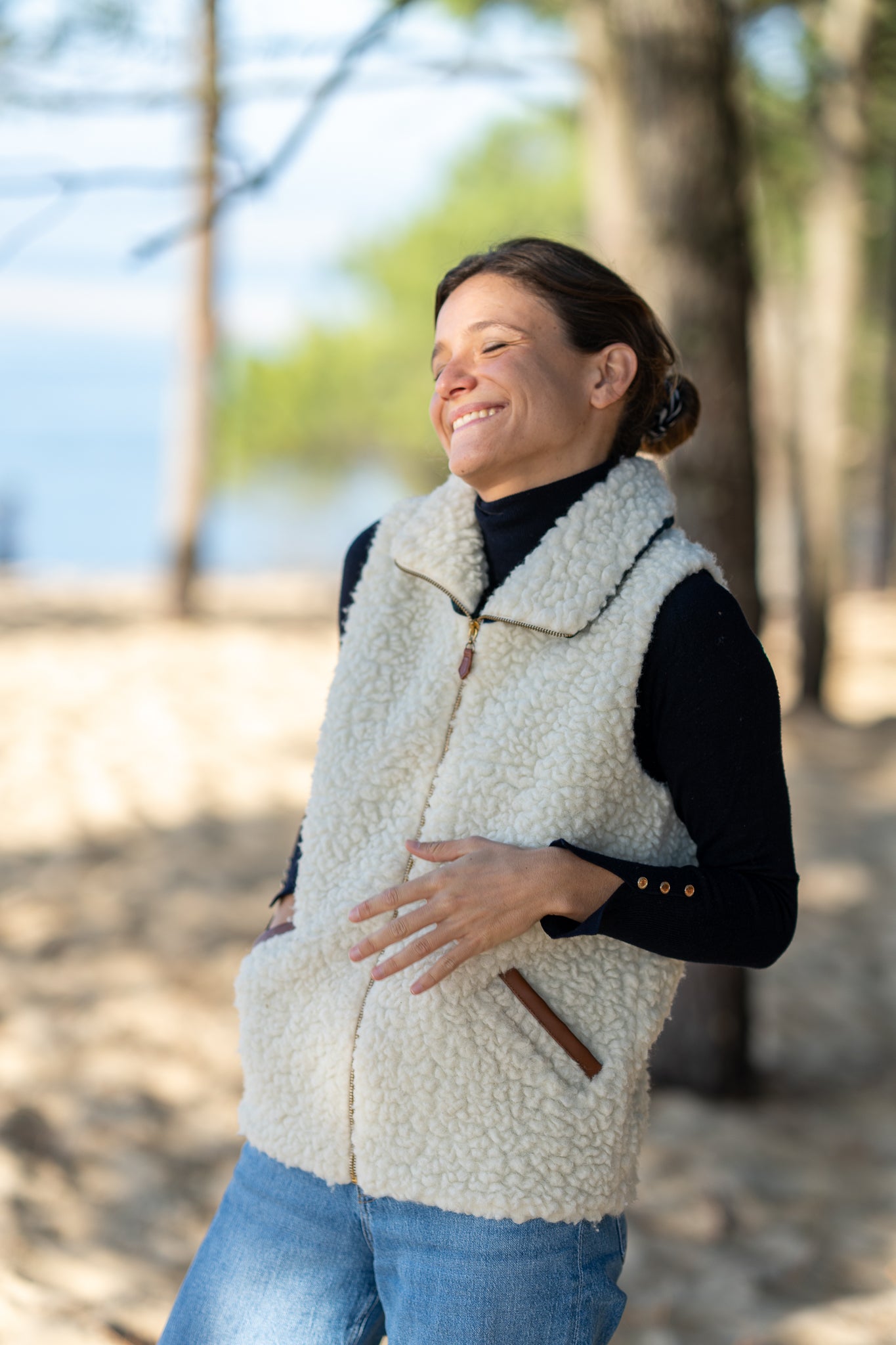 Victoire mesure 1m67 et porte une taille 36. Si vous hésitez entre 2 tailles, privilégiez celle du dessus. Notre gilet a été pensé pour durer dans le temps.
